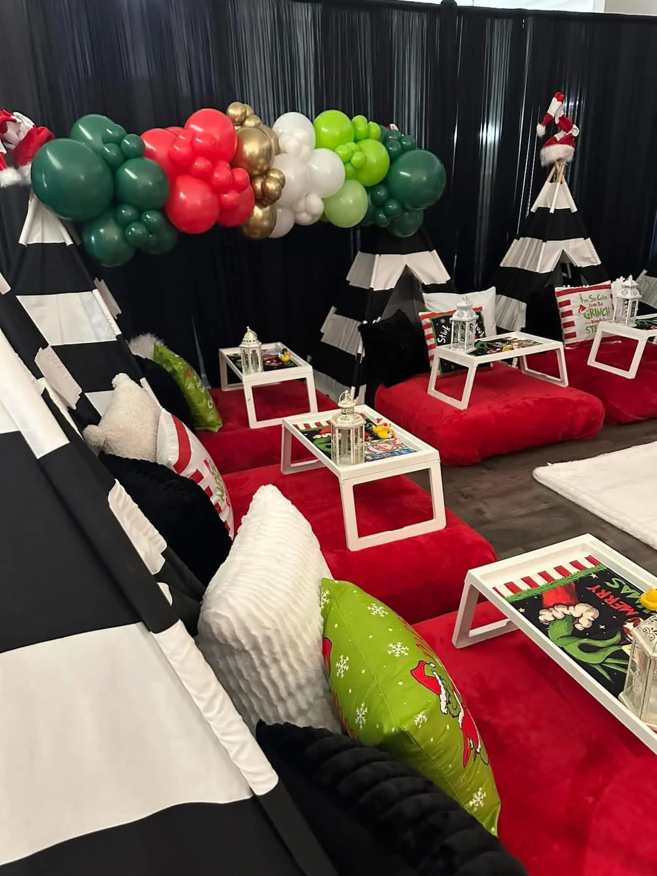 A beautifully styled indoor sleepover experience featuring themed teepees, cozy bedding, and curated decor for a magical night your child will never forget.